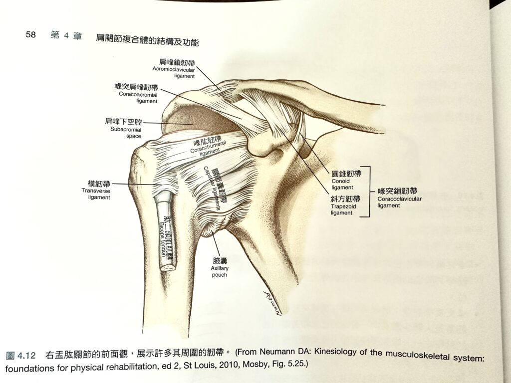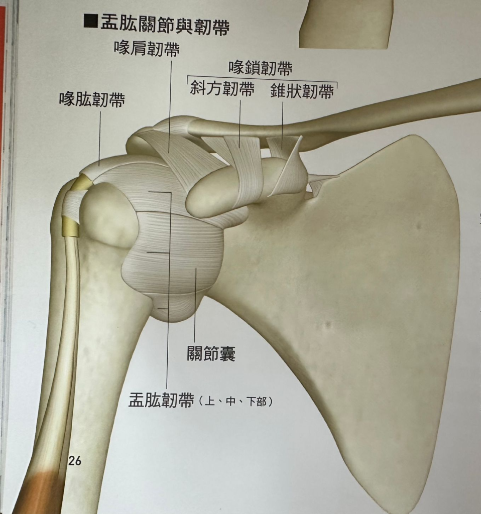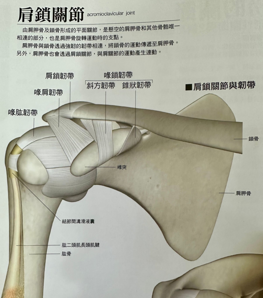 - 肩胛骨掛在鎖骨上(肩鎖關節)