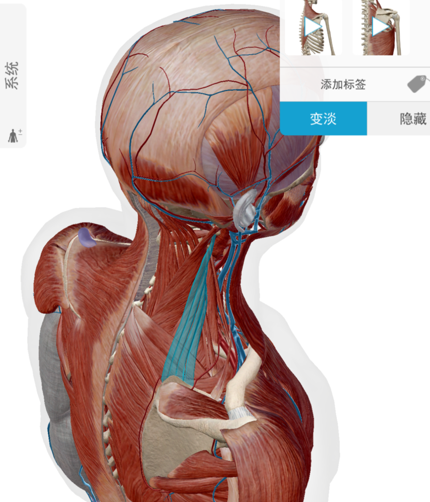 在看這些肌肉的時候,要注意其與骨頭的附著點,因為那是直接影響到骨頭會怎麼動的位置。
