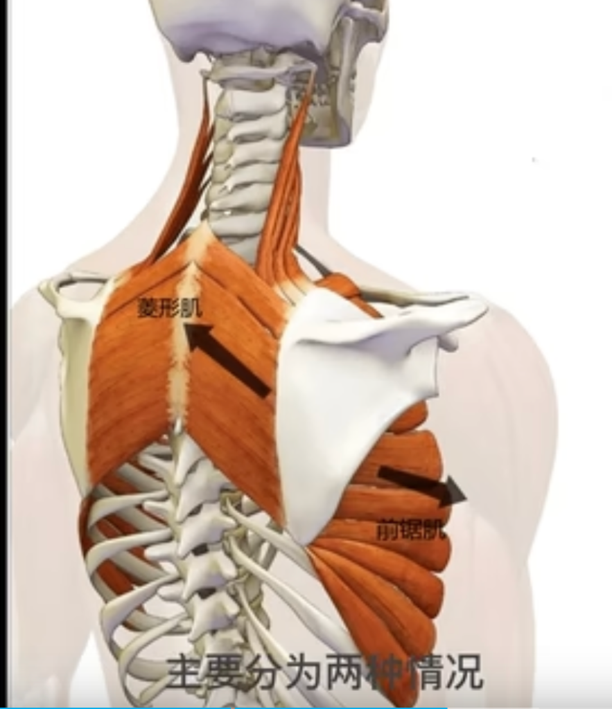 - 前突後縮(肩胛骨靠近和遠離脊椎滑動),也有人叫它外展內收