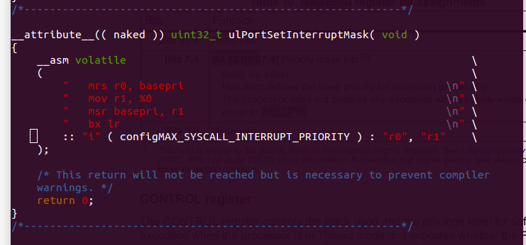 - _保存中斷向量遮罩的狀態,把中斷遮罩設成configMAX_SYSCALL_INTERRUPT_PRIORITY