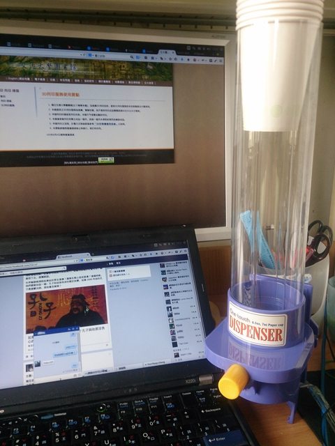 嘔心瀝血後終於畫出來了,但是我沒有3D印表機,幸好交大圖書館有提供價格低廉的3D列印服務,把檔案拿過去他就會幫你印,按公尺算材料費,接下來等著取件就好。