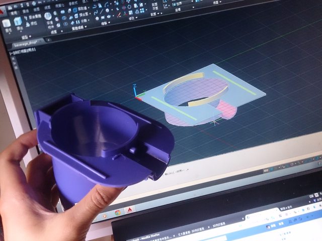 因為這台落杯器是針對紙杯設計的,手搖杯比紙杯大的多,必須要改成手搖杯的尺寸,在紙上畫完設計後之後,要想辦法把3D模型建出來。但我完全不會用3D繪圖軟體,於是花了3天拼命看網路上的教學影片,勉強學會了AutoCAD的基本操作。當時還不會用圖層,害我像笨蛋一樣一直不斷縮放、喬角度,覺得超級難畫。
