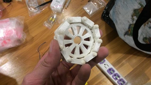 「事實上,我們最近有用3D印表機做了一個履帶。」我欣喜的拿出我們在做落杯器之餘,上網下載3D模型和研究步進馬達的控制所做的玩具履帶:「你覺得這對我們的專案有什麼樣的幫助?」