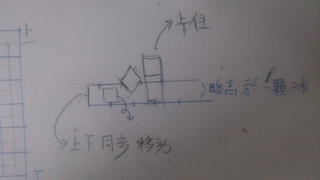 結果和想像完全不一樣。篩網的設 計並不能保證只有單顆冰塊會落下,相反的,可能會有兩顆、三顆連在一起的冰塊以一種微妙的平行六面體姿態通過。我不死心,認為是竹筷做出的網目大小不夠一致,讓冰塊容易從大的縫隙掉下去,於是跑去清大用雷射切割做了新的篩網,並再做一次實驗。結果問題依舊,雙層篩網設計本身就充滿瑕疵,實際的冰塊大小並不一致,小的冰塊即使相連,也可能會通過篩網。但網目若設計的太小,所有的冰塊都會卡在上頭。這個問題比想像中棘手。