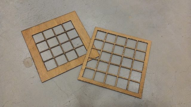 於是我三天兩頭就從交大跑到清大,帶著木板和設計圖做雷射切割,負責接洽我的麟凱非常熱心,手把手教我使用線鋸機的技巧、示範如何把路徑檔匯入電腦內,調整適當的功率、對焦,用雷射在木板上切出想要的形狀。因為木板有點厚度,機器在切的時候還會冒出火光,在走過的路徑留下焦黑的痕跡。